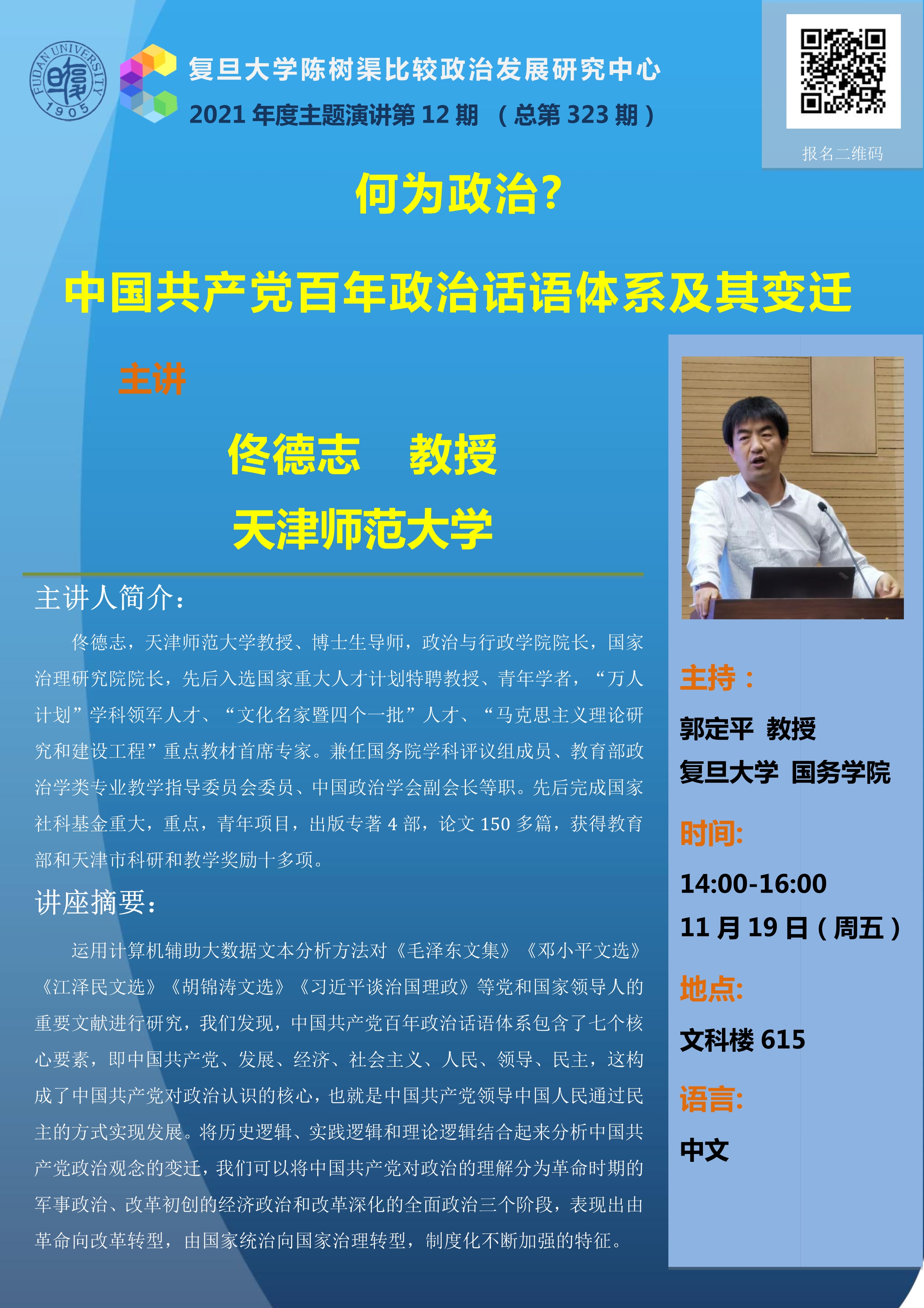 何为政治?中国共产党百年政治话语体系及其变迁(11月19日)