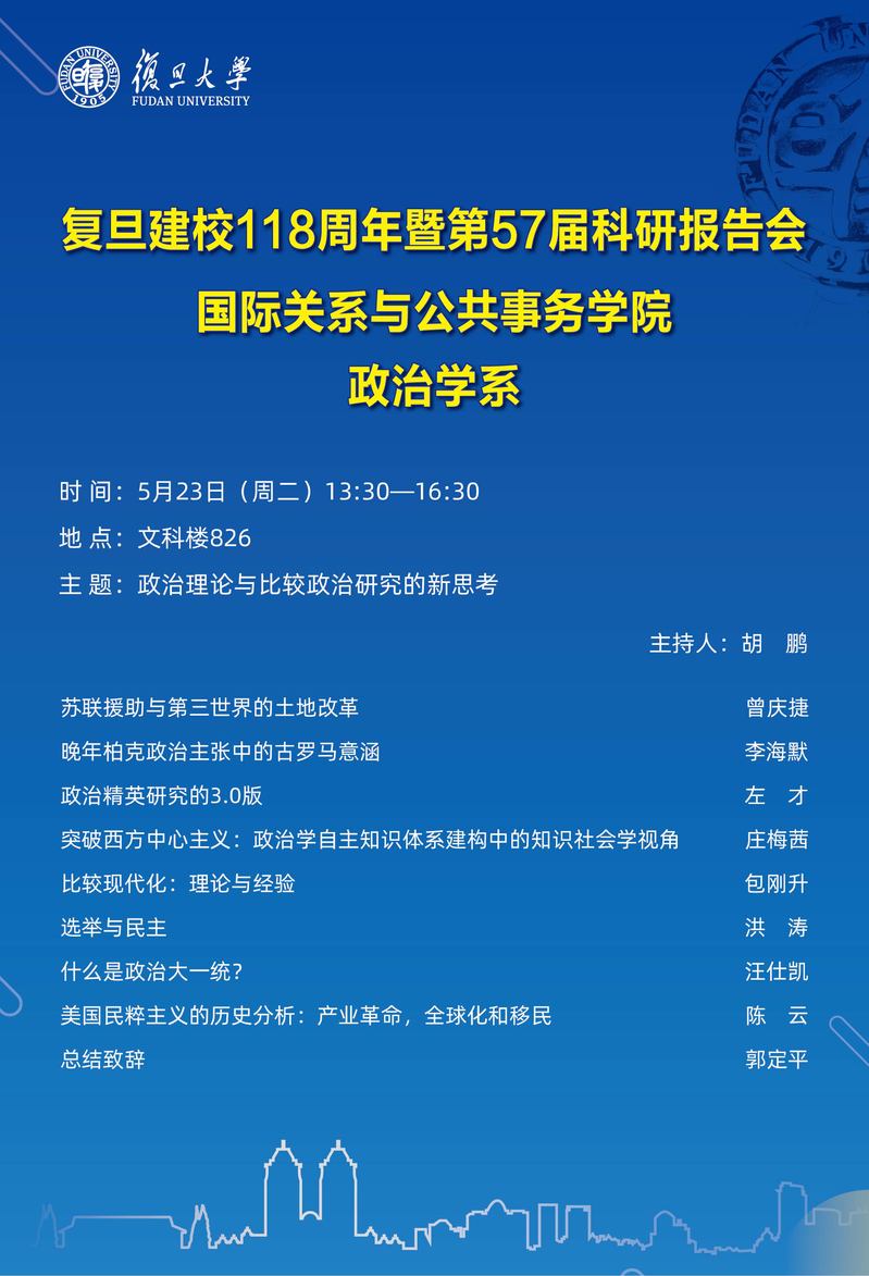 复旦建校118周年暨第57届高清av 报告会 | 政治理论与比较政治研究的新思考(5.23)